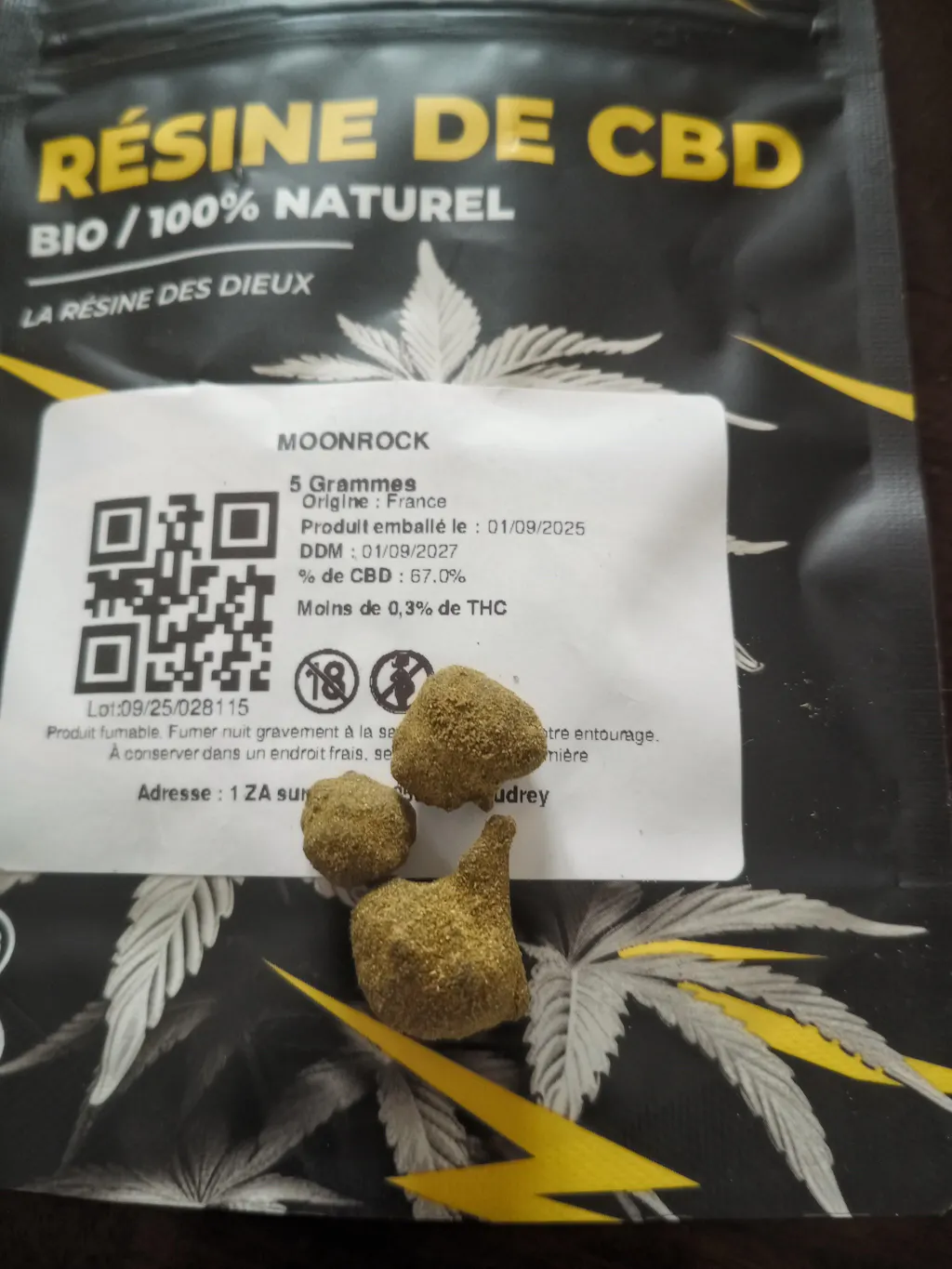 Oui, notre Moonrock CBD respecte le taux de THC légal inférieur à 0,3 %.